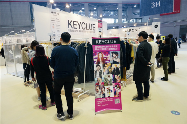最大咖的明星同款 在本屆展會的“展中展”CHIC 潮流品牌展上,來自韓國的潮流集成店KEYCLUE 涵蓋了不少當(dāng)前韓流明星的鐘愛品牌,網(wǎng)絡(luò)集成店的形式也打造了最省錢、最便利的訂貨模式。