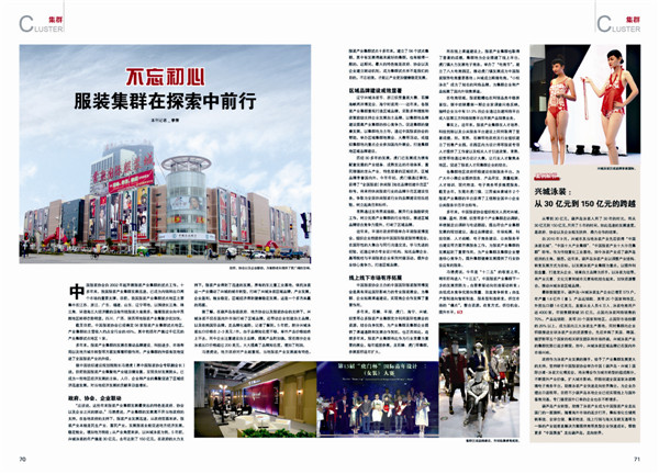 服裝產業(yè)集群最大的特色就是政府、協(xié)會以及企業(yè)建立聯(lián)動機制。各服裝產業(yè)集群重視打造區(qū)域品牌,采取多種措施和政策鼓勵支持企業(yè)發(fā)展自主品牌。在線上渠道建設上,服裝產業(yè)集群也取得了顯著的成績,集群地為企業(yè)搭建了線上平臺。服裝產業(yè)集群在人才培養(yǎng)、科技創(chuàng)新以及公共服務平臺建設上同樣取得了顯著成績。中國服裝產業(yè)集群下一步的發(fā)展思路為:由要素驅動向創(chuàng)造驅動轉變;由低成本競爭優(yōu)勢向質量、效益競爭轉變;由生產型制造向智能制造、服務型制造轉變,抓住市場的“痛點”,整合資源,改變方式,抓住機會,提升水平。