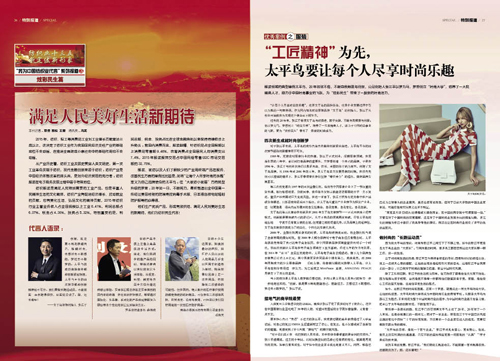 太平鳥服飾創始人 張江平 “讓每個人盡享時尚的樂趣”,這是太平鳥的品牌使命,也是企業發展過程中引以為傲的一句宣傳語。 當下的成功是太平鳥人做夢都沒想過的,但卻又是太平鳥人用自己的努力一步一步地走出來的。創新,就是要不斷地推翻自己,推翻過去,去想過去不敢想的,夢過去不敢夢的。太平鳥的成功自始至終都和創新緊密相連,太平鳥至今的四次轉型都和創新精神密不可分。我們要做長跑運動員,不能前面一百米跑得很快,后面就沒勁了。路,還長著呢!