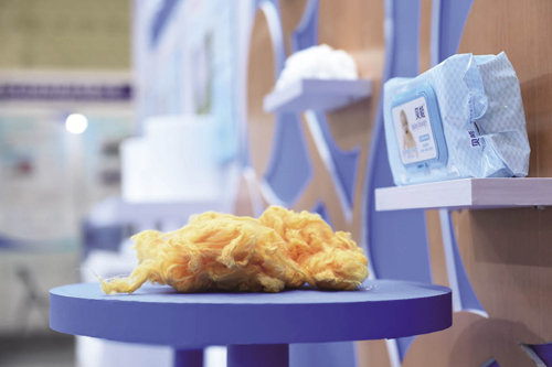 綠色環保是方向 大連瑞光非織造布集團有限公司的展位上掛著一幅廠區的巨大圖片,那是一片綠色的山巒,整齊的廠房就坐落在風景美麗的山間。與這風景一樣美的是他們的產品——可沖散非織造布。“可沖散”甚至成了公司的代名詞,一提起可沖散,業內都會想到大連瑞光。這種布還有個好聽的名字叫“絲瑞潔”。展位負責人告訴記者,“絲瑞潔”可沖散水刺非織造布采用天絲木漿等100%纖維素纖維,完整地體現了綠色、環保、低碳的生活理念,產品通過了歐洲權威實驗室可沖散性能的測試。優異的可沖散性使得非織造布可以直接沖入馬桶,可用于嬰兒濕巾、成人失禁用品、家用清潔抹布等領域。比較牛氣的是,這種產品目前還只有大連瑞光批量生產,絕大部分都用于出口,比常規產品售價高出20%。目前,8月份訂單已經排滿,水刺布要50天后才能拿貨。這位負責人表示,瑞光是強生、金佰利等國外知名品牌的供應商,公司的產品已經與國外沒有差距,能出口高端產品也顯示出公司的實力。歐美消費者綠色環保意識普遍較高,未來國內也會提高,今后水刺的發展方向是綠色環保。 作為在國內率先推出以生物基為原料的無紡布企業,美亞無紡布工業有限公司的展位總是人頭攢動。誰也想不到的是,以聚乳酸為原料的無紡布可以做衣服、做被子,每個走進公司展位的客人都會上前摸摸衣服,摸摸被子,感受生物基材料的魅力。公司董事長黃祖基介紹說,聚乳酸是一種天然生物基材料,是從可再生的植物如玉米、木薯、甘蔗等提取淀粉和纖維素,通過生物酶的作用發酵聚合后成為聚乳酸,再經過紡絲制成纖維。由于這種材料與人體PH值非常接近,被稱為人體第二皮膚,可廣泛用于面膜、乳墊、紙尿褲、衛生巾等領域。“而且,這種材料可以在自然環境中降解,是完全綠色環保產品。”目前,公司所有產品全部出口,比常規產品售價高出30%,但仍然在國外暢銷。黃祖基透露,未來,聚乳酸的來源甚至可以擺脫植物,直接從二氧化碳或者甲烷等中獲取,“當然,這需要新技術的推進,我們等著看吧。”