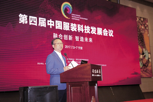 把一塊裁剪好的布料平鋪在設備上,按下按鈕,隨著機器的運轉,一側的鎖邊自動完成了,幾個部件協同動作,布料轉移到下一個工位,另一側的鎖邊又自動完成……這是上工申貝的自動鎖邊機在第四屆中國服裝科技發展會議的現場進行演示。此外,自動鎖眼機、自動釘扣機、自動上袋機、自動門襟拉鏈機……十幾臺先進的自動縫紉設備吸引了不少與會者的目光。 在展廳的一角,由圣泉集團開發含有石墨烯的纖維紗線展位前也是人頭攢動。美棉公司則展示了運用高技術開發的功能性棉纖維材料,讓人們感受未來纖維的魅力。 7月6~7日,由中國服裝協會、紡織之光科技教育基金會主辦,中國服裝智能制造技術創新戰略聯盟、全國服裝標準化技術委員會(SAC/TC 219)、上工申貝(集團)股份有限公司承辦的第四屆中國服裝科技發展會議在寧波舉行。 新材料、人工智能、機器人、大數據、物聯網、智能制造……兩天時間里,這些是人們口中念叨最多的詞匯,可見當今社會最前沿的技術已經悄然進入服裝業,用高新技術改造和提升服裝產業正成為行業轉型升級的突出標志。會議發布了現階段服裝科技創新和智能制造等方面的最新成果,既有高屋建瓴的頂層架構研究,也有具體的裝備技術和柔性制造落地方案,既有行業發展觀的尋求共識,也有智能制造的技術路徑,詮釋了“融合創新,智造未來”這一大會主題。 參加會議的行業領導有:中國紡織工業聯合會會長、中國服裝協會會長孫瑞哲,中紡聯副會長、中服協常務副會長陳大鵬,紡織之光科技教育基金會常務副理事長葉志民,中國紡織建設規劃院院長馮德虎;國家部委和寧波當地的領導有:工信部消費品司紡織處處長曹庭瑞、寧波市經信委主任陳炳榮;知名專家有:中國工程院院士李培根、東華大學教授聞力生等。來自院校、科研單位、服裝企業的代表300余人出席,陳大鵬主持會議。