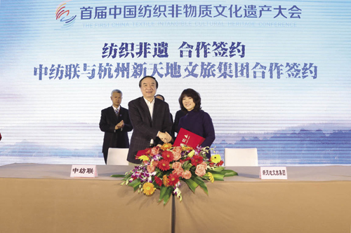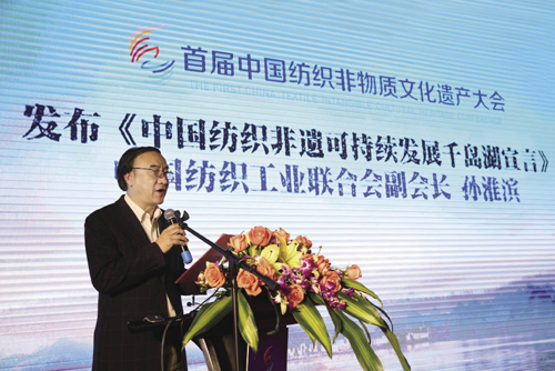 首屆中國(guó)紡織非物質(zhì)文化遺產(chǎn)大會(huì)召開 本刊記者-劉嘉 徐長(zhǎng)杰 首屆中國(guó)紡織非物質(zhì)文化遺產(chǎn)大會(huì)是一次紡織服裝行業(yè)萬(wàn)眾矚目的盛會(huì),一次紡織非遺精彩紛呈的全面展示,更是一個(gè)紡織行業(yè)與社會(huì)各界通力協(xié)作傳承創(chuàng)新紡織非遺的新起點(diǎn)。 11月28~30日,首屆中國(guó)紡織非物質(zhì)文化遺產(chǎn)大會(huì)在杭州千島湖文淵獅城隆重召開。水韻古城與傳承數(shù)千年的紡織非遺璀璨文化和技藝相映成輝、相得益彰。這是我國(guó)紡織行業(yè)貫徹落實(shí)十九大精神,肩負(fù)新時(shí)代弘揚(yáng)與發(fā)展中華優(yōu)秀傳統(tǒng)文化歷史使命的一次盛會(huì)。來(lái)自國(guó)家政府部門、行業(yè)組織及社會(huì)各界的領(lǐng)導(dǎo),研究與教育領(lǐng)域的專家學(xué)者,非遺傳承人及非遺保護(hù)機(jī)構(gòu)代表,企業(yè)家、設(shè)計(jì)師、新聞出版及媒體界人士數(shù)百人歡聚一堂,以高度的責(zé)任感、使命感和極大的熱情,共謀新時(shí)代中國(guó)紡織非物質(zhì)文化遺產(chǎn)可持續(xù)發(fā)展大計(jì)。