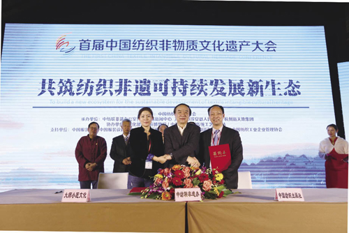 主題大會(huì)高屋建瓴,主題論壇案例生動(dòng) 11月29日,首屆中國(guó)紡織非遺大會(huì)開幕,大會(huì)分為主題大會(huì)與主題論壇兩大部分,分別由中國(guó)紡織工業(yè)聯(lián)合會(huì)副會(huì)長(zhǎng)孫淮濱、中紡聯(lián)非遺辦主任張家洲主持。 中國(guó)紡織工業(yè)聯(lián)合會(huì)黨委書記兼秘書長(zhǎng)高勇作題為《共筑紡織非遺可持續(xù)發(fā)展新生態(tài)》的主旨報(bào)告,全面闡述了構(gòu)筑紡織非遺可持續(xù)發(fā)展新生態(tài)的關(guān)鍵性原則和路徑。 國(guó)家級(jí)突出貢獻(xiàn)絲綢專家、人類非遺宋錦織造技藝國(guó)家級(jí)傳承人錢小萍就宋錦傳承與發(fā)展發(fā)表演講;文化部恭王府博物館副館長(zhǎng)陳曉文以《非遺傳承創(chuàng)新與中國(guó)文化自信》為題發(fā)表演講;中國(guó)藝術(shù)研究院副院長(zhǎng)賈磊磊就“一帶一路”與紡織非遺發(fā)展機(jī)遇及策略為內(nèi)容發(fā)表演講;清華大學(xué)美術(shù)學(xué)院前院長(zhǎng)李當(dāng)岐作題為《非遺傳承與紡織服裝現(xiàn)代教育體系的創(chuàng)新融合》的主題演講;中央民族大學(xué)民族服飾研究所所長(zhǎng)祁春英針對(duì)少數(shù)民族地區(qū)紡織非遺保護(hù)與傳承的創(chuàng)新模式發(fā)表演講;中國(guó)紡織出版社社長(zhǎng)鄭偉良的演講內(nèi)容是紡織非遺知識(shí)傳播與數(shù)字化出版。 每位專家的演講均涉及新時(shí)代紡織非遺可持續(xù)發(fā)展諸多重要和關(guān)鍵性領(lǐng)域,觀點(diǎn)鮮明、高屋建瓴,具有很強(qiáng)的權(quán)威性、前瞻性和指導(dǎo)性。 相對(duì)主題大會(huì)高屋建瓴、具有宏觀指導(dǎo)意義的專家權(quán)威的演講而言,當(dāng)天下午舉行的主題論壇則側(cè)重于紡織非遺活態(tài)傳承的生動(dòng)實(shí)踐,充分體現(xiàn)了非遺傳承人、企業(yè)家、設(shè)計(jì)師的民族情懷與責(zé)任擔(dān)當(dāng)。 國(guó)家級(jí)非遺南通藍(lán)印花布代表性傳承人、南通大學(xué)非遺研究院院長(zhǎng)吳元新,杭州萬(wàn)事利絲綢文化股份有限公司董事長(zhǎng)李建華,北京勞倫斯·許服裝服飾有限公司董事長(zhǎng)許建樹,廣東名瑞(集團(tuán))股份有限公司總經(jīng)理蔡中涵,依文服飾股份有限公司副總裁、依文手工坊副董事長(zhǎng)殷麗莉,杭州新天地文旅集團(tuán)總裁林瑾共六位演講嘉賓分享了他們?cè)诩徔椃沁z保護(hù)、傳承與創(chuàng)新方面的成功經(jīng)驗(yàn)和鮮活生動(dòng)的故事,讓人們受益匪淺。 會(huì)議最后,孫淮濱宣讀《中國(guó)紡織非遺可持續(xù)發(fā)展千島湖宣言》,形成共識(shí),不忘初心,肩負(fù)使命,致力于傳承優(yōu)秀傳統(tǒng)文化,充分挖掘紡織傳統(tǒng)工藝獨(dú)特價(jià)值和無(wú)窮魅力,加快提升紡織工業(yè)文化軟實(shí)力、文化創(chuàng)造力和文化影響力,增強(qiáng)文化自覺,重塑文化自信,弘揚(yáng)工匠精神,推進(jìn)“紡織大國(guó)”向“紡織強(qiáng)國(guó)”轉(zhuǎn)變。 戰(zhàn)略合作共謀發(fā)展,成果展示豐富多彩 大會(huì)期間,中紡聯(lián)與新天地文旅集團(tuán)就紡織非遺文化旅游產(chǎn)品及市場(chǎng)開發(fā)簽定戰(zhàn)略合作協(xié)議,共同推進(jìn)適合不同文化旅游市場(chǎng)的紡織非遺創(chuàng)意產(chǎn)品及相關(guān)衍生產(chǎn)品的開發(fā)、生產(chǎn)與銷售。 同時(shí),中紡聯(lián)非遺辦、中國(guó)紡織出版社、大師小匠文化傳播有限公司三方也進(jìn)行了合作簽約。三方均擁有良好的品牌形象和行業(yè)地位,通過(guò)品牌和項(xiàng)目運(yùn)營(yíng),促進(jìn)紡織非遺在圖書出版、影視制作等領(lǐng)域的傳播及創(chuàng)新開發(fā),共同促進(jìn)紡織非遺的多領(lǐng)域開發(fā)與多元化發(fā)展。 大會(huì)期間還成功舉辦了紡織非遺保護(hù)與研究成果展,集中展出了清華大學(xué)藝術(shù)與科學(xué)研究中心柒牌非物質(zhì)文化遺產(chǎn)研究與保護(hù)基金項(xiàng)目的部分研究成果。2008年8月,福建柒牌集團(tuán)有限公司捐款500萬(wàn)元在清華大學(xué)藝術(shù)與科學(xué)研究中心設(shè)立非物質(zhì)文化遺產(chǎn)研究與保護(hù)基金,面向全國(guó)征集研究項(xiàng)目,開展非物質(zhì)文化遺產(chǎn)研究與保護(hù)工作。2014年又為基金捐款350萬(wàn)元,為第二期研究項(xiàng)目提供資助。近十年來(lái),柒牌基金從500多項(xiàng)申請(qǐng)中篩選出88個(gè)項(xiàng)目進(jìn)行了資助,以高度的責(zé)任心和使命感為紡織非遺的研究與保護(hù)工作做出了突出貢獻(xiàn)。 非遺大秀錦上添花,座談會(huì)暢談發(fā)展 11月29日晚,中國(guó)著名時(shí)裝設(shè)計(jì)師勞倫斯·許(Laurence Xu)為首屆中國(guó)紡織非遺大會(huì)奉上以“中國(guó)風(fēng),非遺韻”為主題的非遺時(shí)裝秀,將文淵獅城所承載的新安文化、非遺經(jīng)典元素,通過(guò)中式禮服完美呈現(xiàn),為首屆紡織非遺大會(huì)錦上添花。 勞倫斯·許是第一位登上巴黎高級(jí)定制服裝周的華人設(shè)計(jì)師。此次非遺秀是勞倫斯·許歷年經(jīng)典作品集錦,整場(chǎng)秀共展示45套作品,分古之繁華、歲月岑寂、未來(lái)之輝煌三個(gè)篇章。作品將東西方藝術(shù)巧妙結(jié)合,將時(shí)尚與古韻完美統(tǒng)一,每個(gè)細(xì)節(jié)都在無(wú)