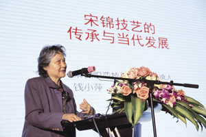 國(guó)家級(jí)突出貢獻(xiàn)絲綢專家、人類非遺宋錦織造技藝國(guó)家級(jí)傳承人、研究員 錢小萍: 對(duì)于中國(guó)傳統(tǒng)桑蠶絲織技藝對(duì)促進(jìn)人類文明進(jìn)步與發(fā)展的貢獻(xiàn),可以簡(jiǎn)單地概括為六個(gè)字:美麗、舒適、健康。我退休之后一直做宋錦的傳承,因?yàn)樗五\比較輕薄,現(xiàn)代人很需要這種文人氣息,所以我們把宋錦做成旗袍、包,現(xiàn)在在擴(kuò)大宋錦用途方面的開發(fā)。當(dāng)今我們正處在對(duì)古絲綢文化保護(hù)、非物質(zhì)文化遺產(chǎn)挖掘、傳承和創(chuàng)新的最好的歷史時(shí)期,我作為國(guó)家級(jí)宋錦非物質(zhì)遺產(chǎn)傳承人仍將盡心盡力將它傳承下去,發(fā)揚(yáng)光大。
