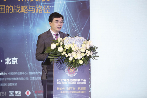 2017中國紡織創新年會在北京舉行 本刊記者-李曉慧 李芳 12月7日,主題為“新時代 新平衡 新發展——建成世界紡織強國的戰略與路徑”的2017中國紡織創新年會在北京舉行,本屆中國紡織創新年會由中國紡織工業聯合會主辦,工業和信息化部支持,中國紡織信息中心和國家紡織產品開發中心聯合承辦。 會議從行業大勢、科技進步、材料資源、時尚創意、品牌建設、社會責任、消費需求、產品競爭力與可持續創新等多個維度,分享年度創新成果、探討“十三五”時期建成世界紡織強國的戰略與路徑。 工業和信息化部消費品工業司司長高延敏、副司長曹學軍,中國紡織工業聯合會會長孫瑞哲、副會長陳大鵬、李陵申、端小平,新疆維吾爾自治區人民政府副秘書長、自治區發展紡織服裝帶動就業領導小組辦公室主任梁勇,深圳市龍華區政協副主席、大浪時尚小鎮建設領導小組執行副組長仙新民等領導,以及來自中國紡織工業聯合會各職能部門和專業協會的領導、專家,江蘇盛澤東方絲綢市場管委會、浙江紹興柯橋區等國內重要紡織產業集群的領導、嘉賓,國內外紡織服裝產業鏈優秀企業代表共同出席。 本屆年會還得到了中國紡織服裝品牌園、COLORO?、立達(中國)紡織儀器有限公司、浙江宇華控股集團有限公司、江蘇凱靈紡織科技研發中心有限公司的支持。
