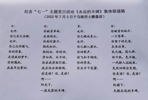 接下來全體同志集體詠誦了詩歌《永遠的豐碑》。